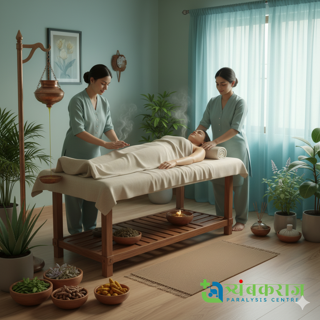 At Trimbakraj, we combine ancient Ayurvedic wisdom with modern rehabilitation science. Personalized herbal formulations and traditional therapies are used to balance the body’s doshas, promote nerve regeneration, and restore vitality. Our Ayurvedic approach strengthens natural healing, enhances mobility, and supports long-term recovery for paralysis patients.